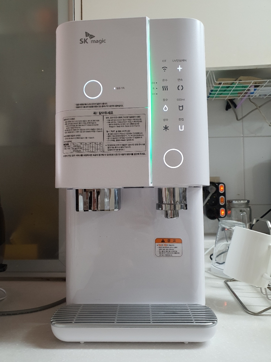 기능에는 큰 차이가 없습니다 기존대로 얼음도 나오고 냉수 정수 사용이 가능한데 달라진점은 온수 기능을 추가 하였습니다 . 컵라면 끓이기에는 조금 약하다 할수 있지만 종이컵에 믹스커피 타서 먹기에는 딱좋고 또 녹차같은거 타먹기도 좋아요
